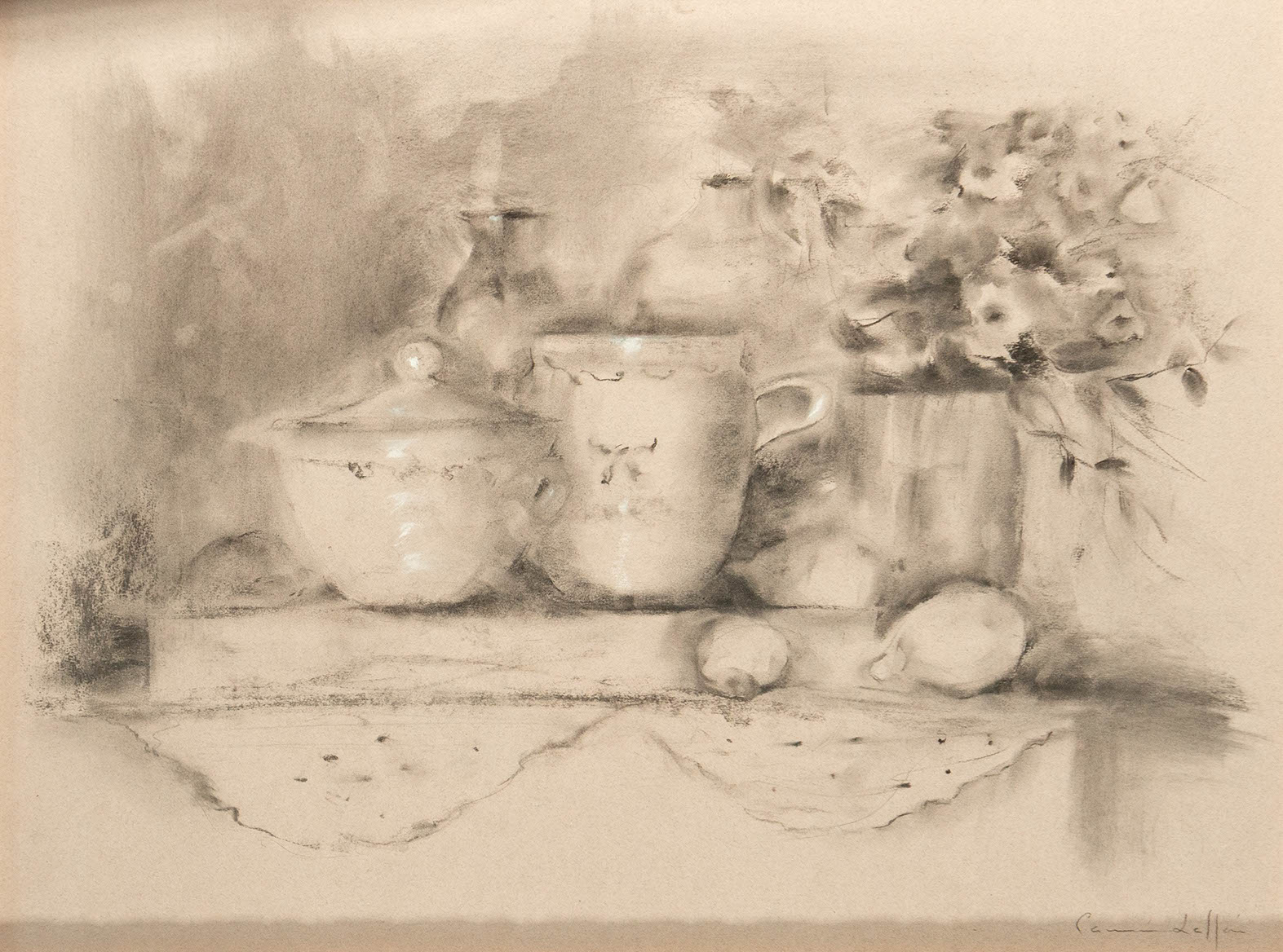 Carmen Laffón, Bodegón con azucarero, limones y manteles